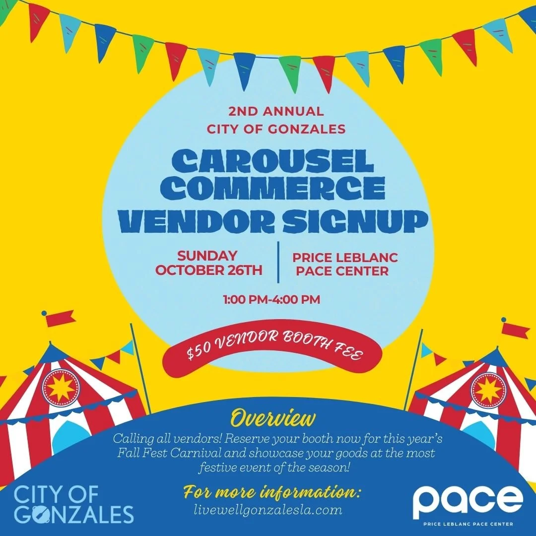 The 2nd Annual City of Gonzales Fall Fest is happening Sunday, October 26th, and weβre bringing back the carnival vibes you loved β with even more family fun in store! π β¨